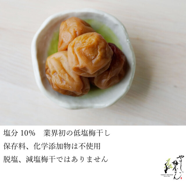 すっぱい梅干と比較して塩分50%オフの塩分10%の低塩梅干し